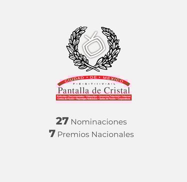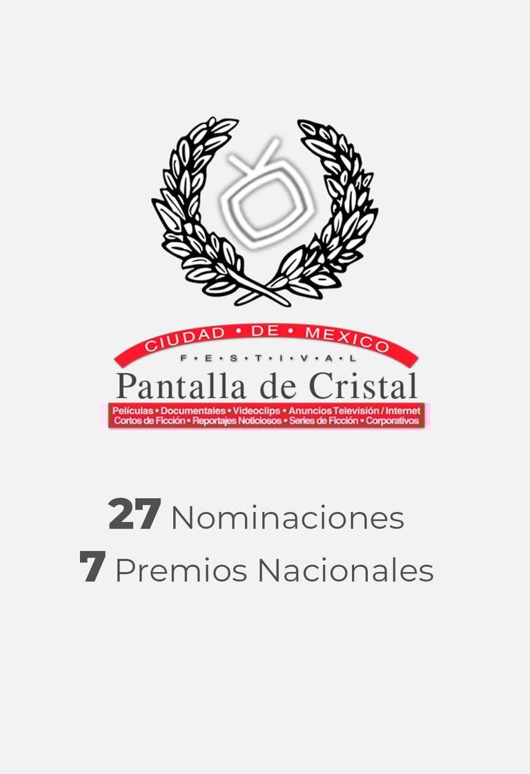 A lo largo de más de 27 años de experiencia, nuestro trabajo ha sido reconocido con 27 nominaciones y 7 premios nacionales en el Festival Pantalla de Cristal de la Ciudad de México, por producciones realizadas para nuestros clientes.